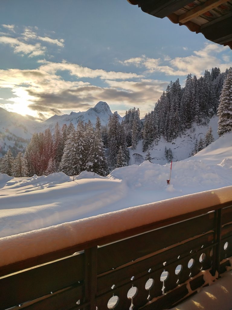 In der gemütlichen Wohnküche können Sie den Tag harmonisch ein- und ausklingen lassen. Die großzügigen Fenster und der Balkon lassen die schöne Bergwelt fast bis ins Zimmer reichen.